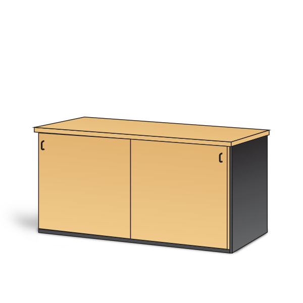 Biblioteca en melamina 25mm con 1 estante, puertas corredizas y cerradura. Medidas 1,60 x 0,80 x 0,45.